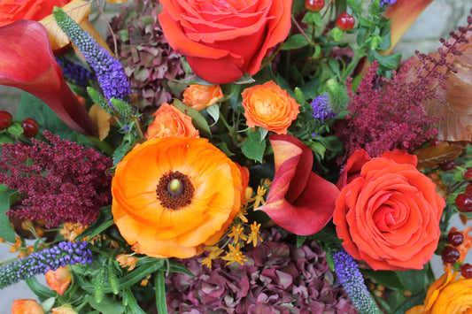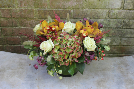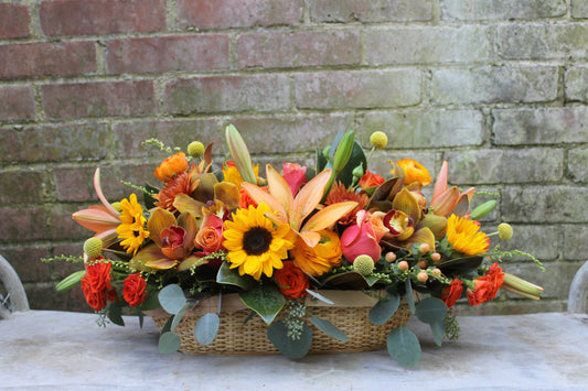 Elevate your Thanksgiving celebration with our expertly curated selection of floral arrangements designed to complement the season’s warmth. These low, lush compositions combine rich autumn hues and textured elements, creating an inviting atmosphere while ensuring unobstructed views across your table.