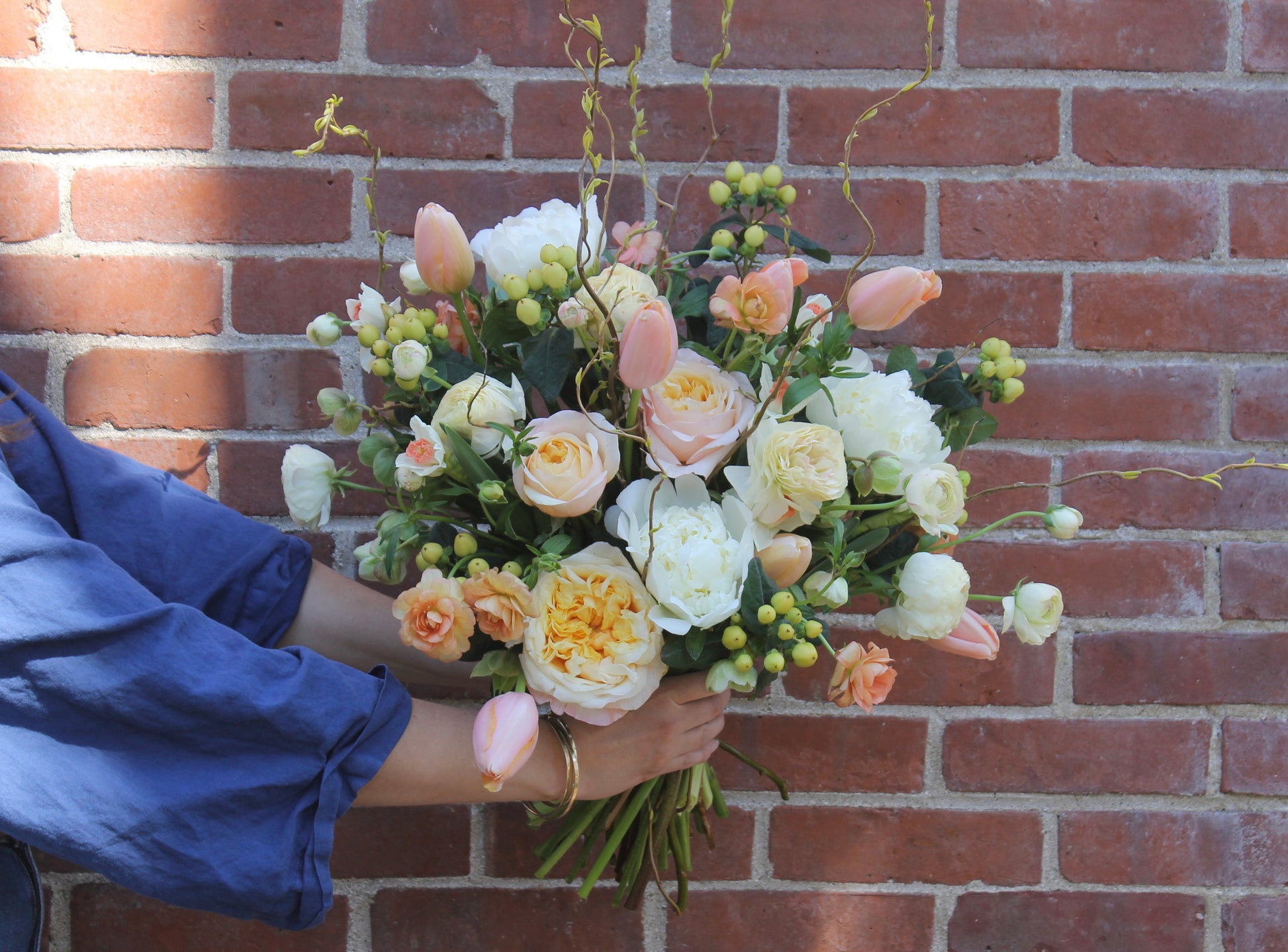 Lush whites, creams, and peaches. A luxurious collection of only the best blossoms, for the most special person, on a special day.