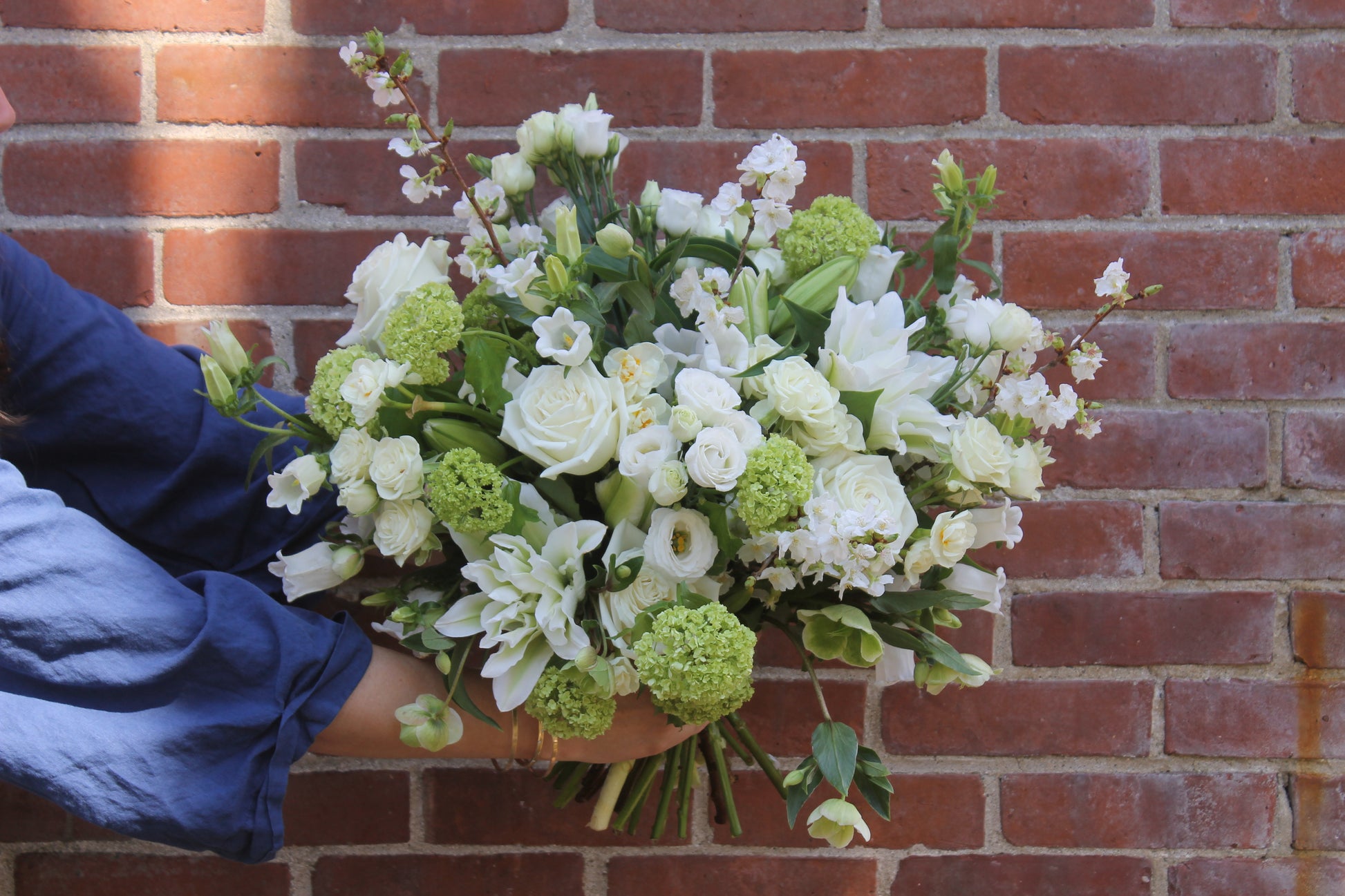 Bright and clean whites and greens. A calm and serene arrangement to bring beauty, peace, and quiet to the busiest mama's day.